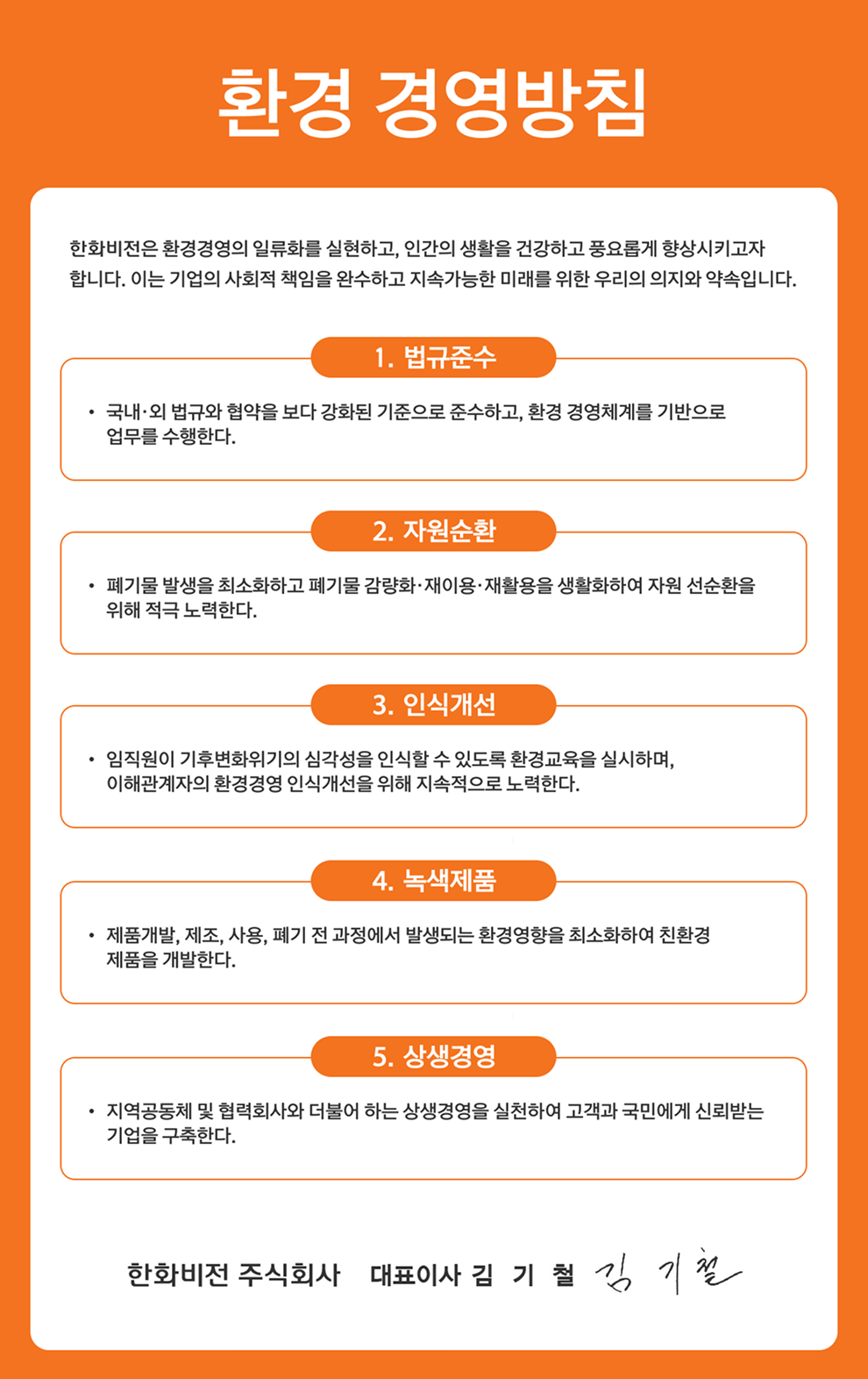 한화비전은 제품 개발과 구매 단계에서부터 친환경 요소를 고려해 유해물질을 검증하고, 협력사 환경평가를 실시하며, 자재 단순화를 통해 자원 순환과 재활용 가능성을 높이고 있습니다.